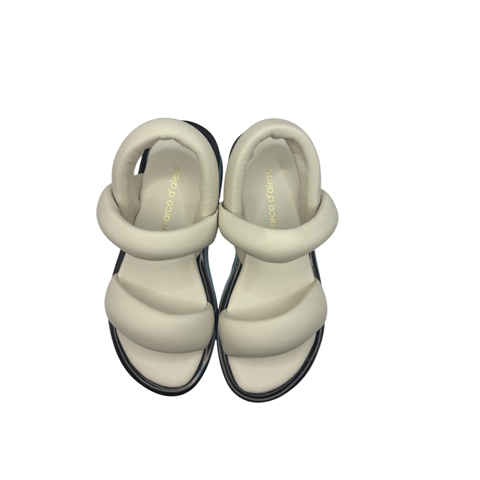 Marco D’Alessi delivers comfort with a twist in this soft, sculptural sandal. The cushioned cross straps wrap your foot in cloud-like padding, while the pale blue platform adds a fresh pop of colour. A lightweight design and chunky tread sole make them just as practical as they are playful — perfect for sunny strolls, casual catch-ups, or adding a modern edge to your summer wardrobe. Pair with cropped linen trousers, wide-leg jeans, or a breezy midi dress to let the colour-block sole shine. Fits true to size, with a softly padded footbed for all-day wear.