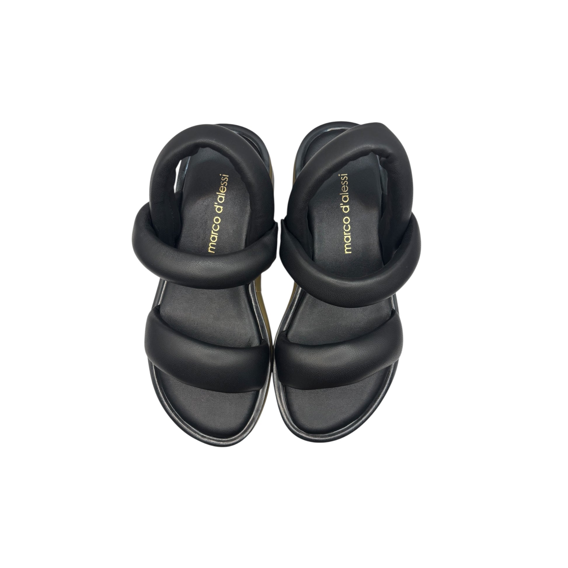 Marco D’Alessi delivers comfort with a twist in this soft, sculptural sandal. The cushioned cross straps wrap your foot in cloud-like padding, while the pale blue platform adds a fresh pop of colour. A lightweight design and chunky tread sole make them just as practical as they are playful — perfect for sunny strolls, casual catch-ups, or adding a modern edge to your summer wardrobe. Pair with cropped linen trousers, wide-leg jeans, or a breezy midi dress to let the colour-block sole shine. Fits true to size, with a softly padded footbed for all-day wear.