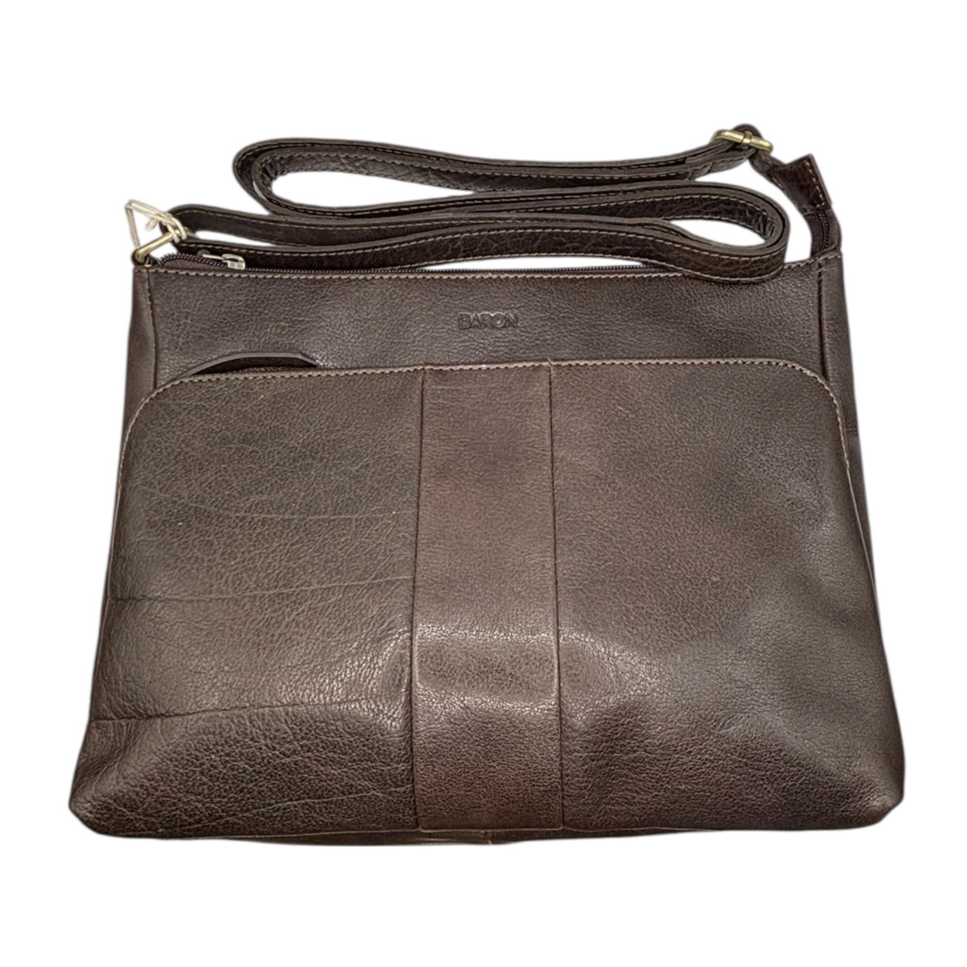 Classic, spacious, and built to last — this Baron shoulder bag is crafted from genuine leather with a beautiful natural grain. Designed for everyday practicality, it opens to reveal Baron’s signature printed lining with secure zip and slip compartments to keep your essentials organised.