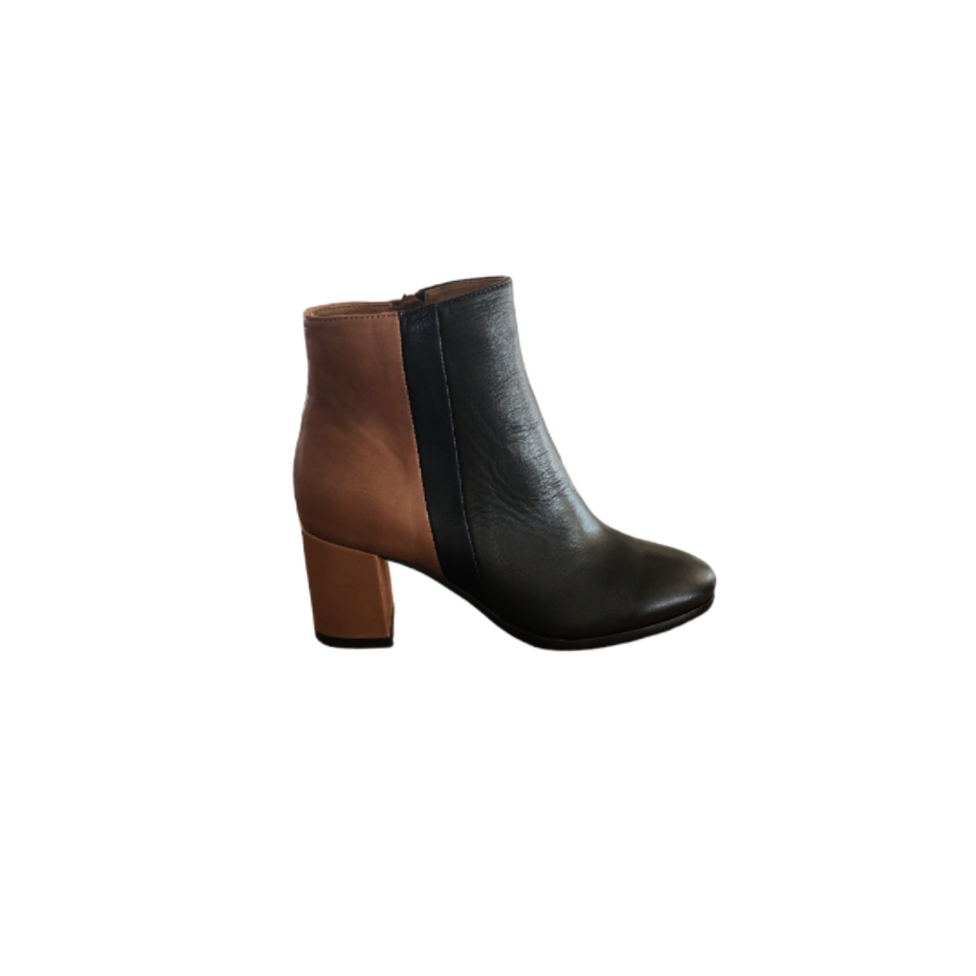 A chic ankle boot crafted from premium leather, showcasing a unique three-tone design in military khaki hues. It features a solid 6.5cm heel and a convenient inside zip for easy wear. Designed in New Zealand, this boot combines style and comfort effortlessly. Pair with skinny jeans and a leather jacket for an edgy look or style with a flowy dress to add a touch of contrast to feminine outfits. Fits true to size; if you're between sizes or have wider feet, consider sizing up for optimal comfort.