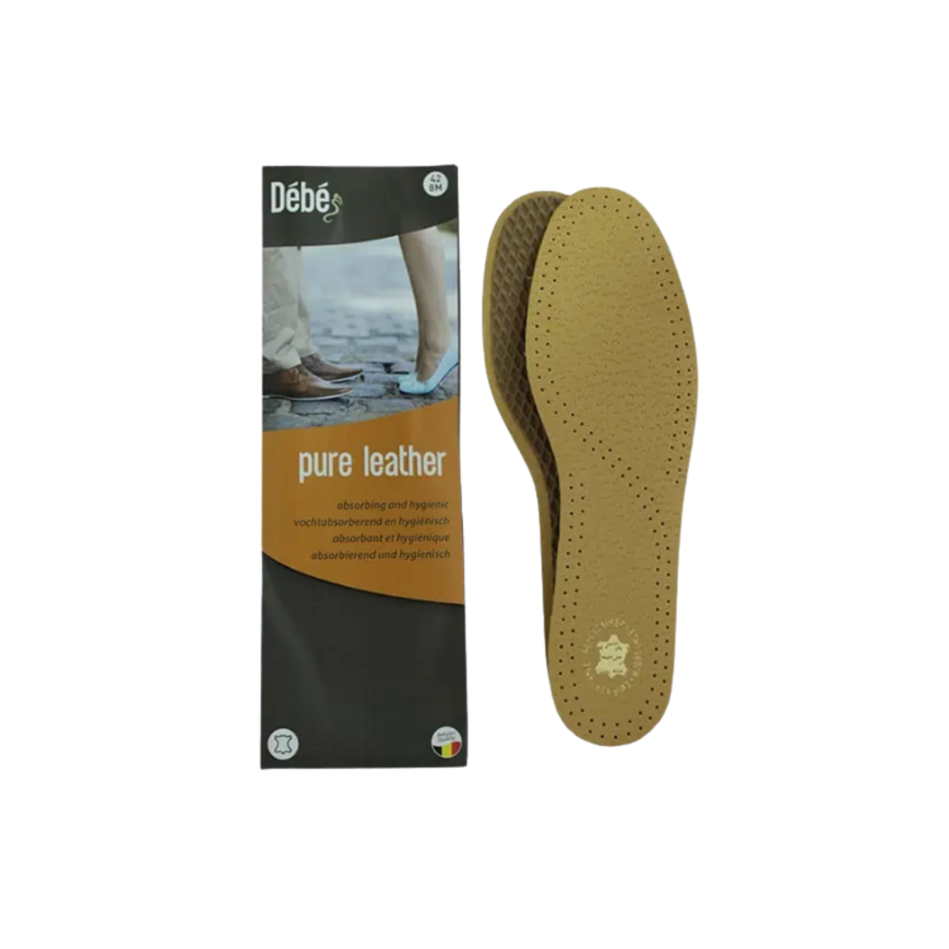 The Débé Pure Leather Insole is a luxurious leather insole with a soft latex rubber bottom layer. The absorbent soft natural leather takes up the moisture while the latex provides comfort every step of the way. It is advisable to remove the insole from your shoes after usage to allow the leather to regenerate.