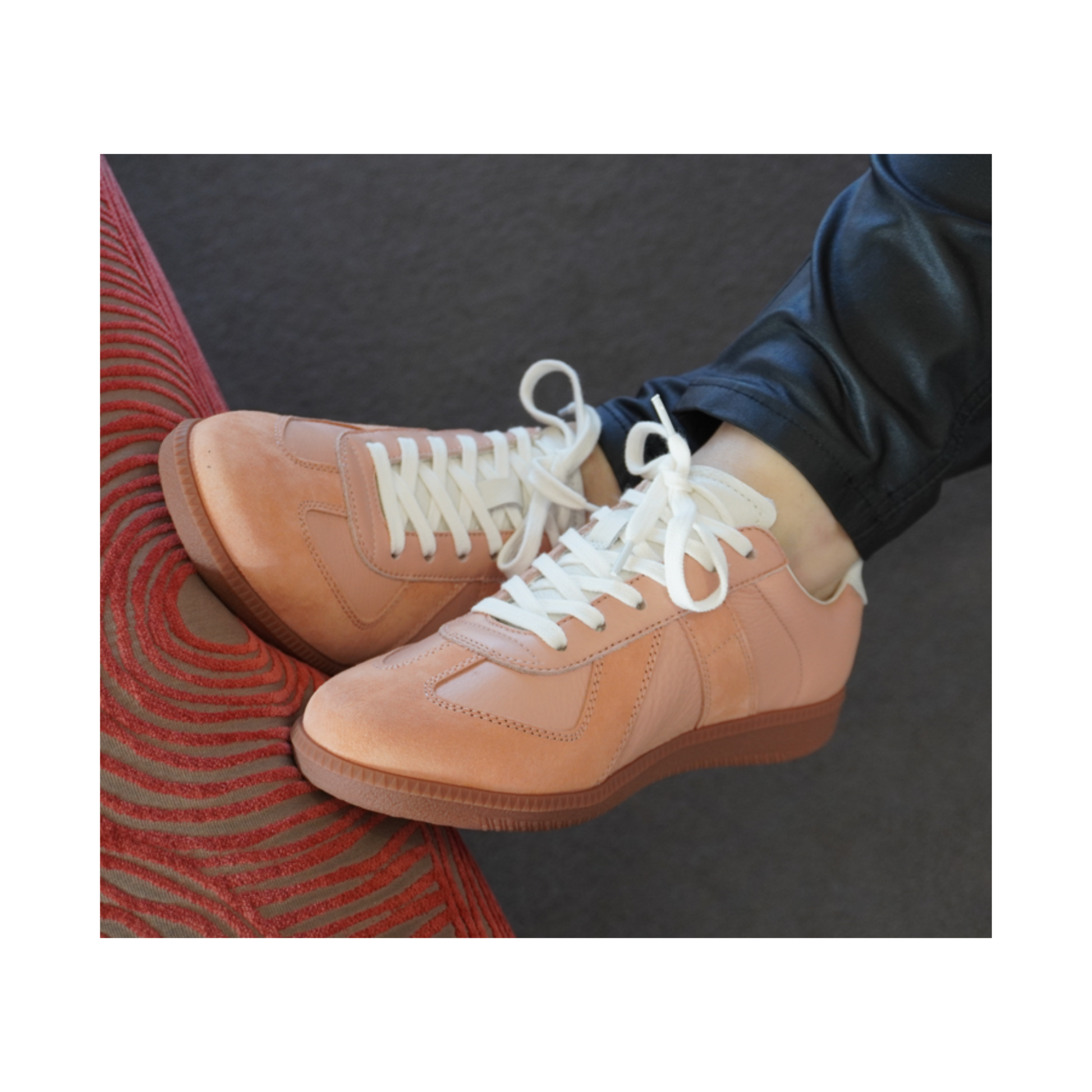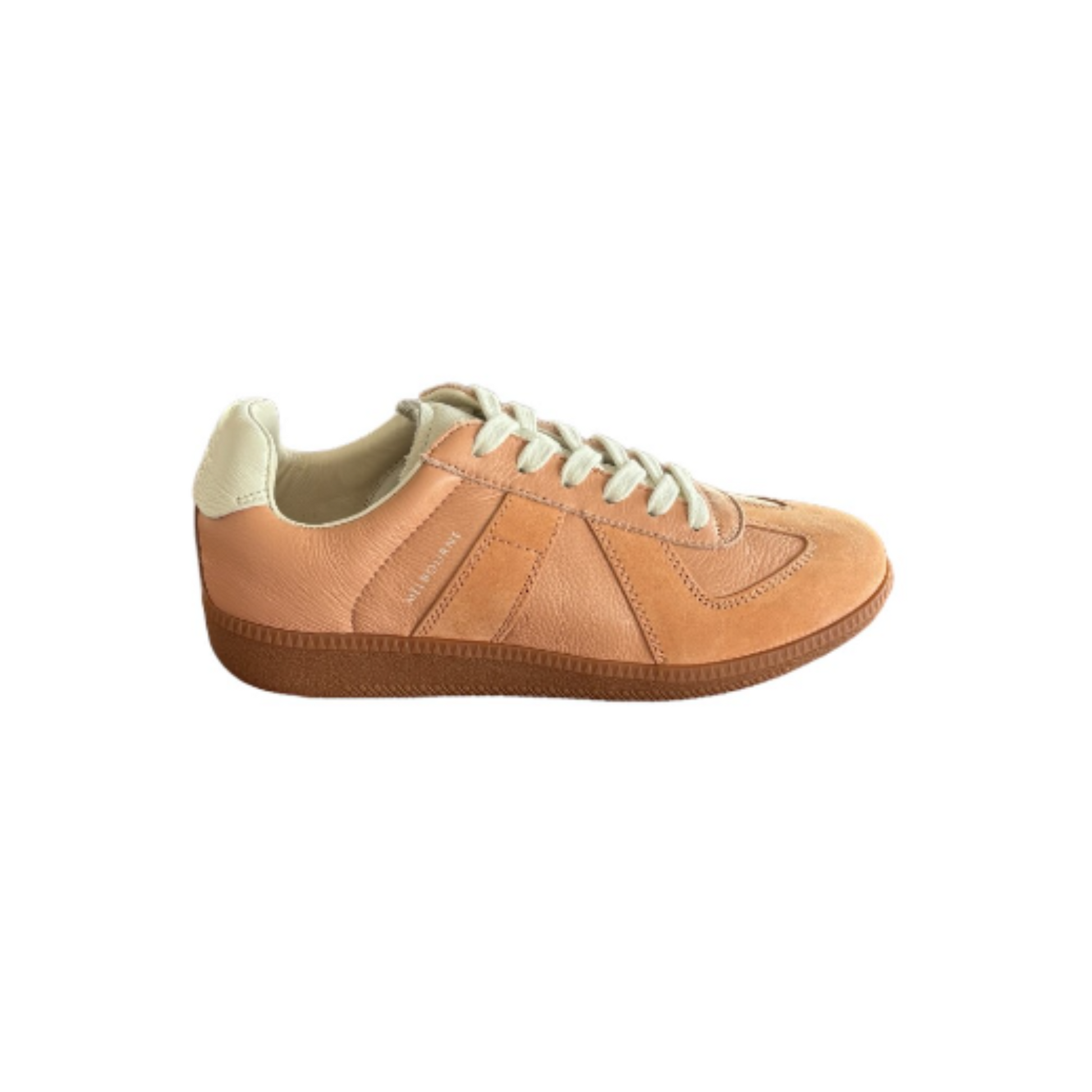 Melba is a laid-back sneaker with retro appeal, finished in soft peachy leather with creamy white details. Great with jeans or a casual skirt, it’s an easy everyday option that feels fresh and playful. The cushioned sole offers gentle support, and the lace-up design allows for adjustability. Fit is true to size.
