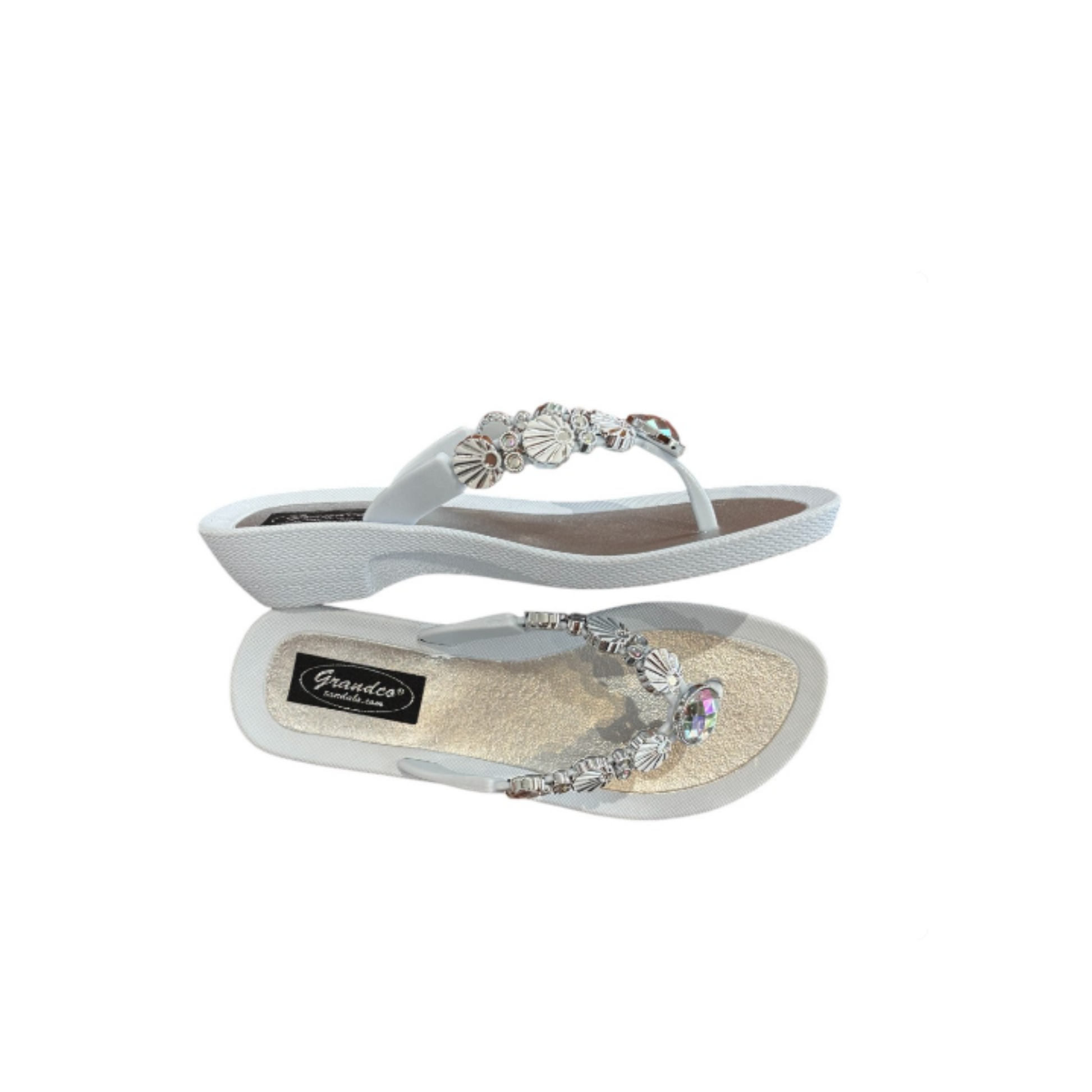 The Grandco jandal brings a touch of understated glamour to your summer rotation. With its elegant beadwork and shimmering centrepiece, it effortlessly moves from beach to bar. The cushioned insole and wedge heel offer all-day support, while the flexible thong strap ensures comfort between the toes. Style it with a flowing maxi dress or relaxed linen pants for an easy, breezy look that still shines. Fit is true to size, and ideal for those wanting a bit of sparkle without sacrificing comfort.
