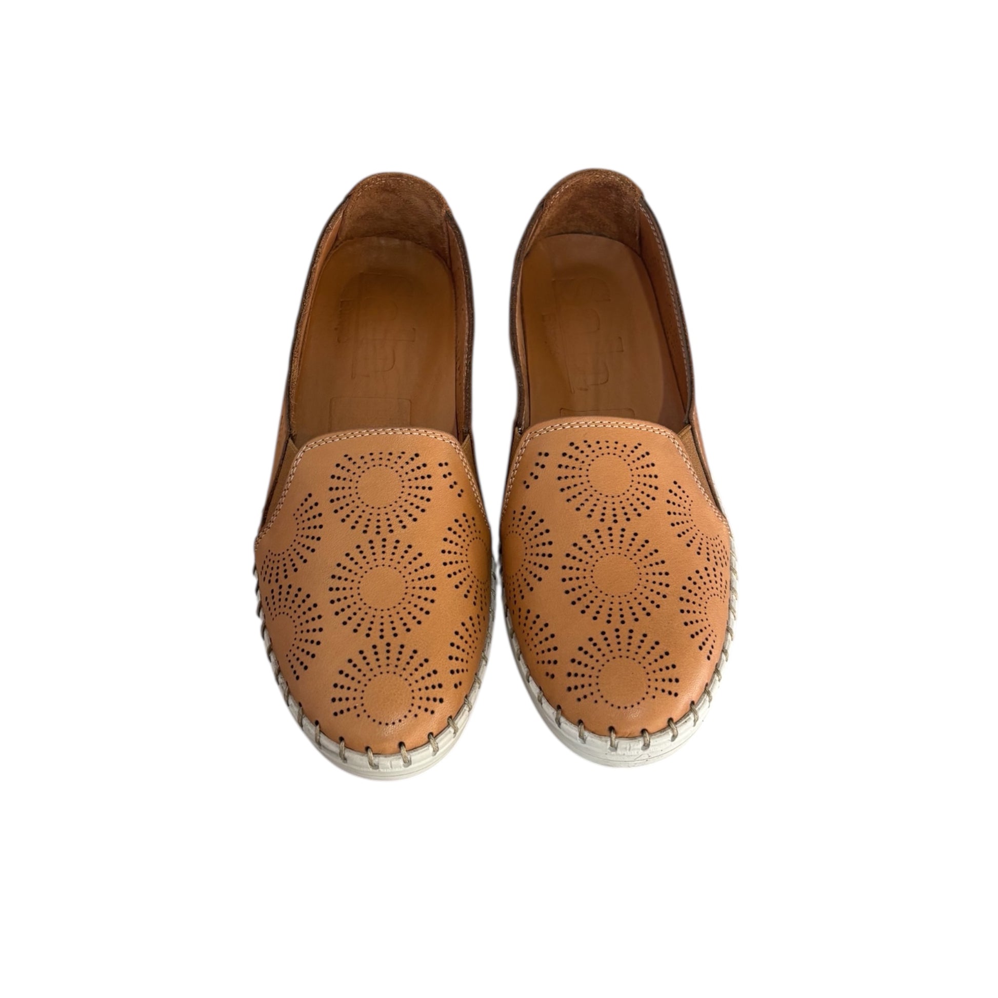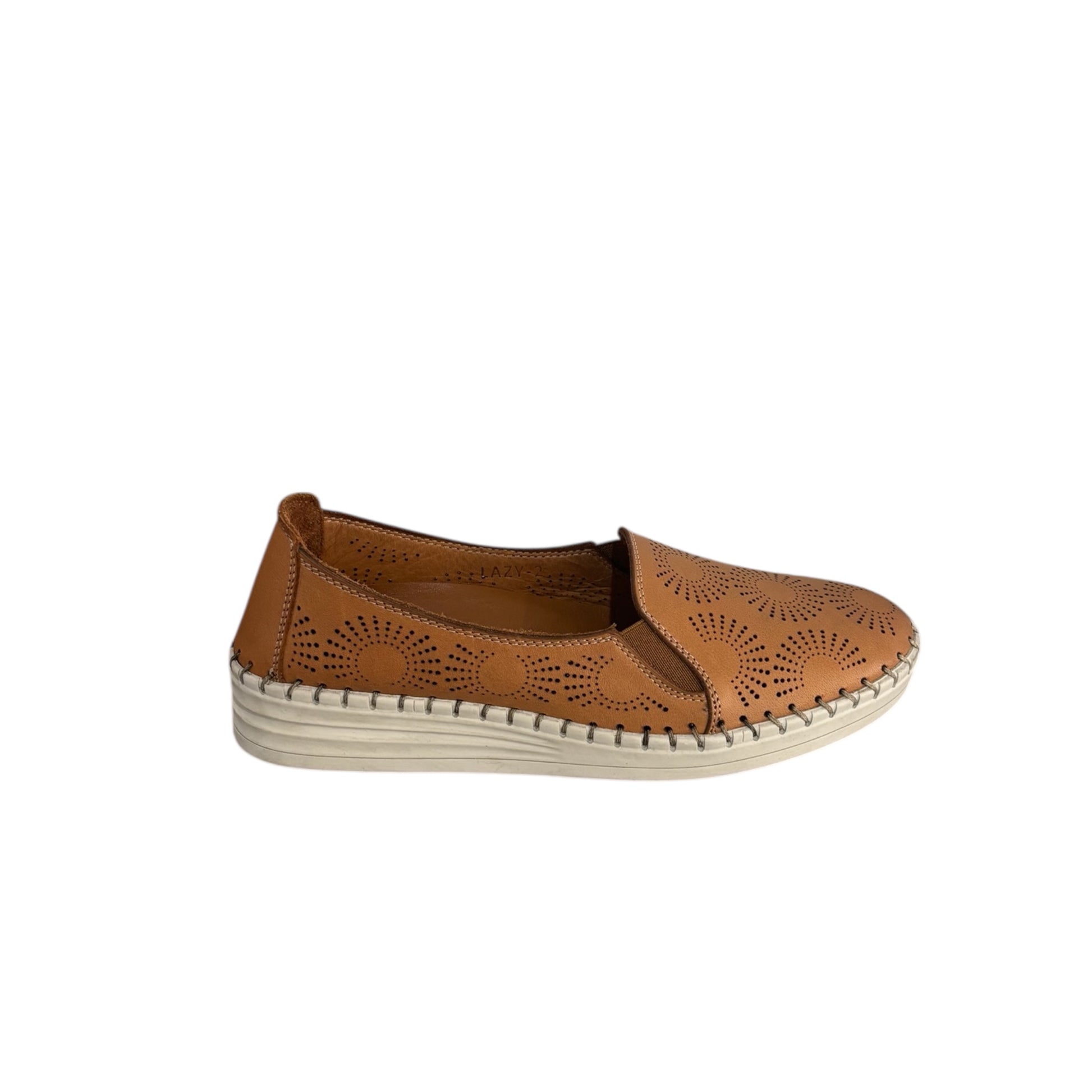 A smart mix of comfort and casual style, Lazy-2 is the perfect everyday slip-on. Crafted from soft leather with playful circular cut-outs, this shoe is all about breathable comfort and effortless wear. The hand-stitched sole and gentle elastic gussets make it easy to slip on and go, while the cushioned insole keeps you comfortable from morning 'til night. Ideal with cropped pants or relaxed denim for a laid-back weekend look. Add a linen shirt or tee for easy, polished comfort — whether you’re travelling, running errands, or strolling the village. Fits true to size with a flexible leather upper that softens beautifully with wear.