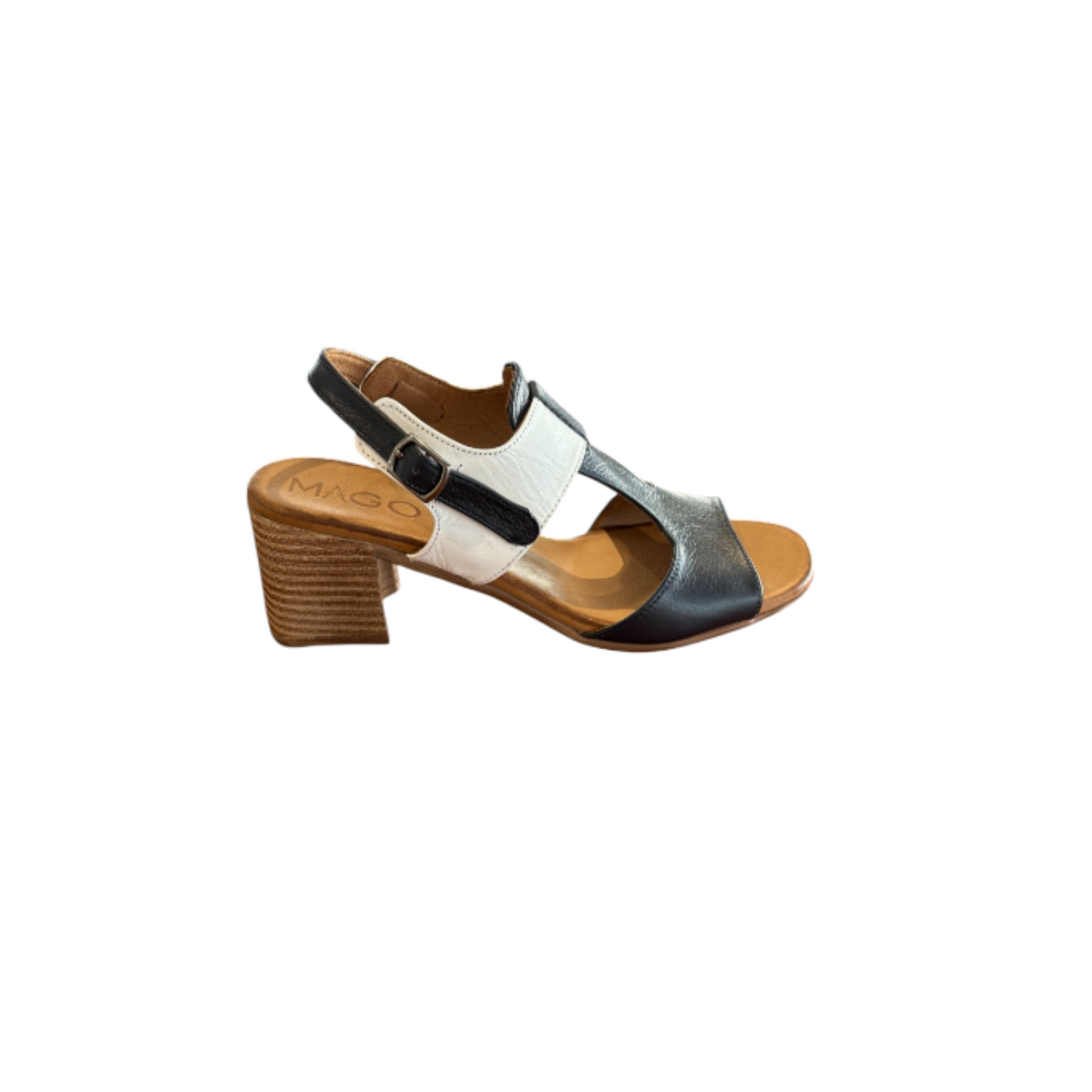 Mago Jessie is a beautifully structured sandal that delivers both polish and personality. The striking navy and white leather combination makes a bold statement, while the mid-height stacked heel offers stability and all-day comfort. With its open-toe design and supportive ankle strap, Jessie works just as well with tailored trousers for the office as it does with a flowing midi dress for lunch with the girls. A smart option for those in the Sole Sisters crew who like their footwear to be functional and fabulous. Fits true to size with a gently supportive footbed.