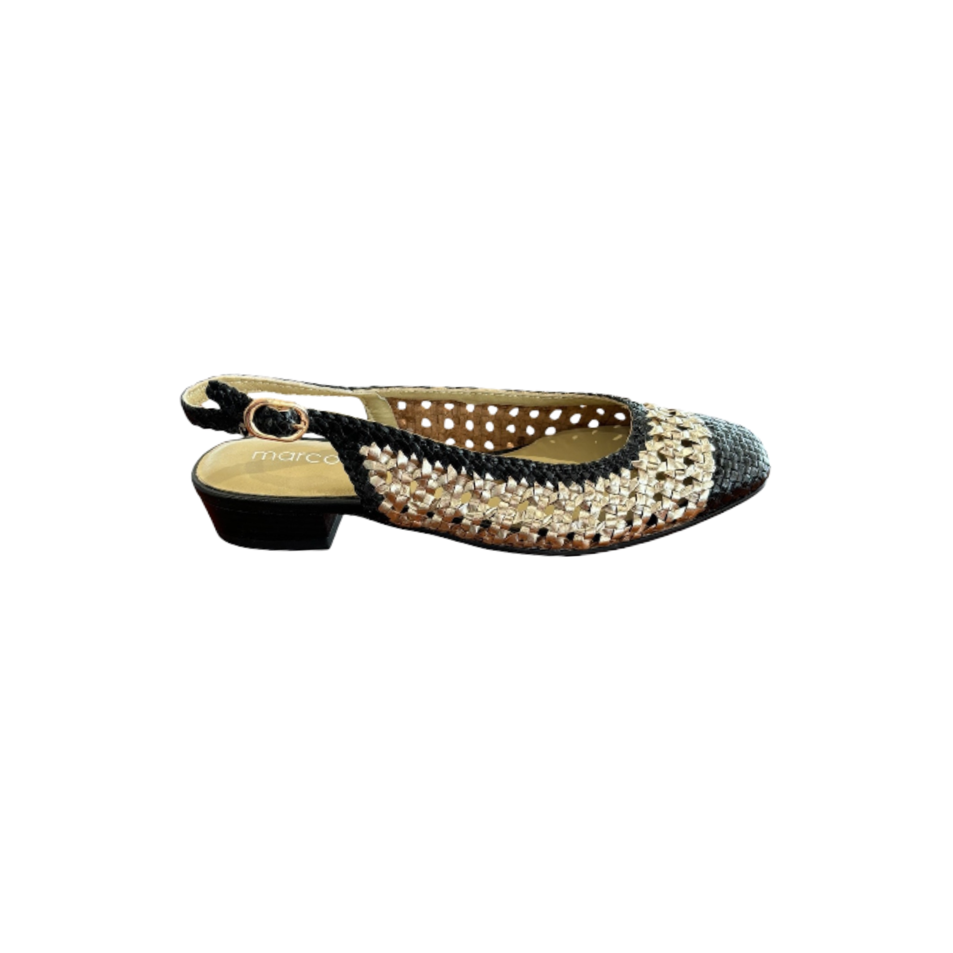 Marco D’Alessi’s Odessi is a beautifully woven slingback that brings breezy elegance to any outfit. The open weave design allows for great airflow on warmer days while offering a secure and flattering fit. The black and gold tones make it an easy match for dresses, culottes or cropped pants, and the petite heel adds just the right lift for day-to-night wear. A chic option for sisters who love timeless design with artisanal flair. Fits slightly on the narrow side.