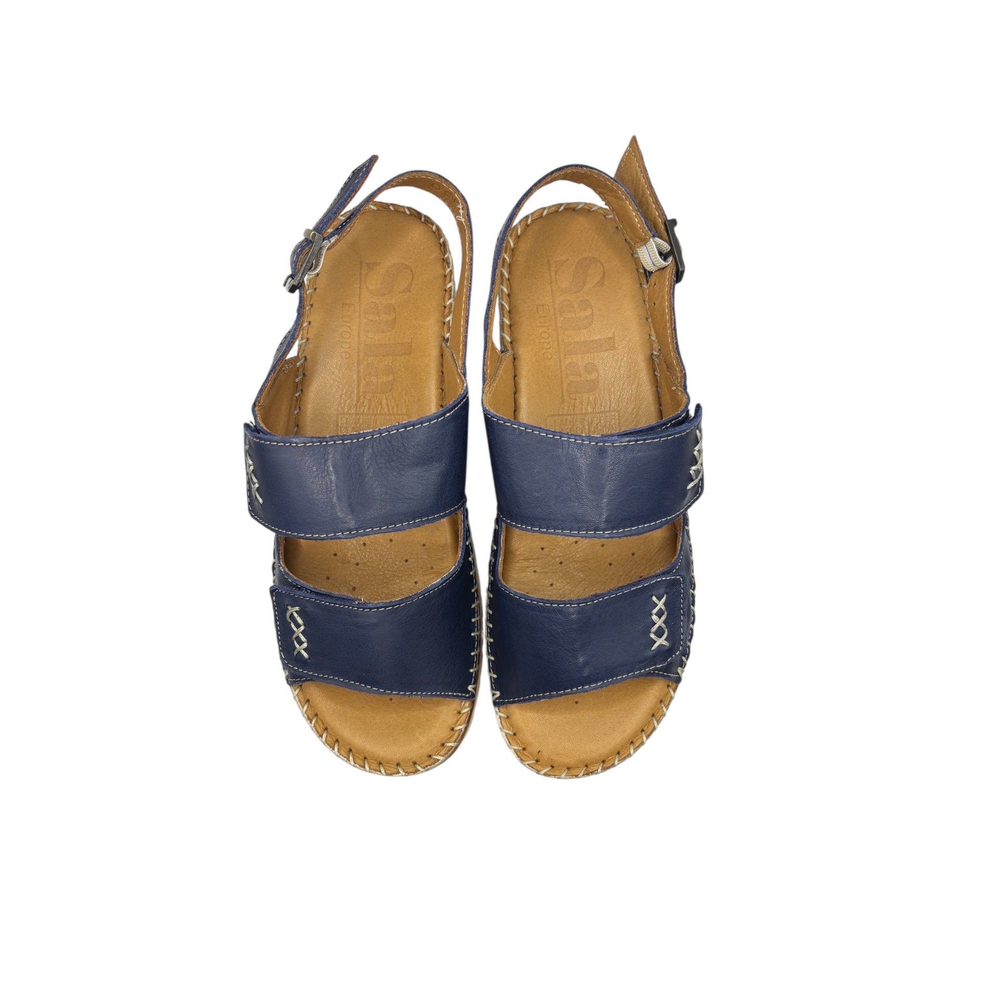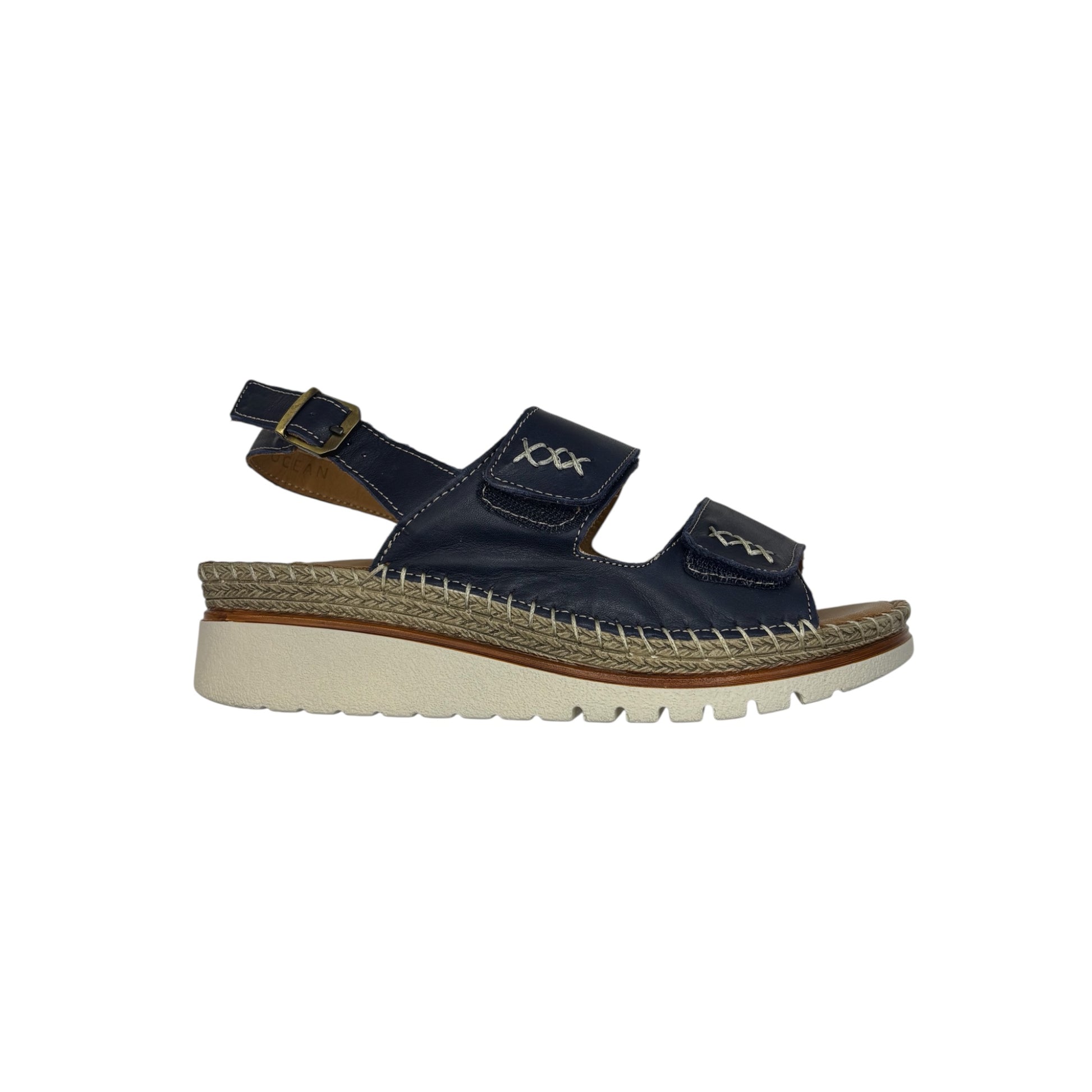 Ocean is designed for comfort! Crafted in soft navy leather, it features twin Velcro straps with contrast stitching for easy adjustability and a personalised fit. The cushioned footbed and sturdy platform sole provide all-day support, while the woven espadrille detail adds a touch of summer charm. Perfect for pairing with linen pants, skirts, or relaxed dresses, this sandal is a true Sole Sisters favourite for women who want both comfort and style. Fits true to size, and the adjustable straps make it ideal for accommodating different foot shapes.