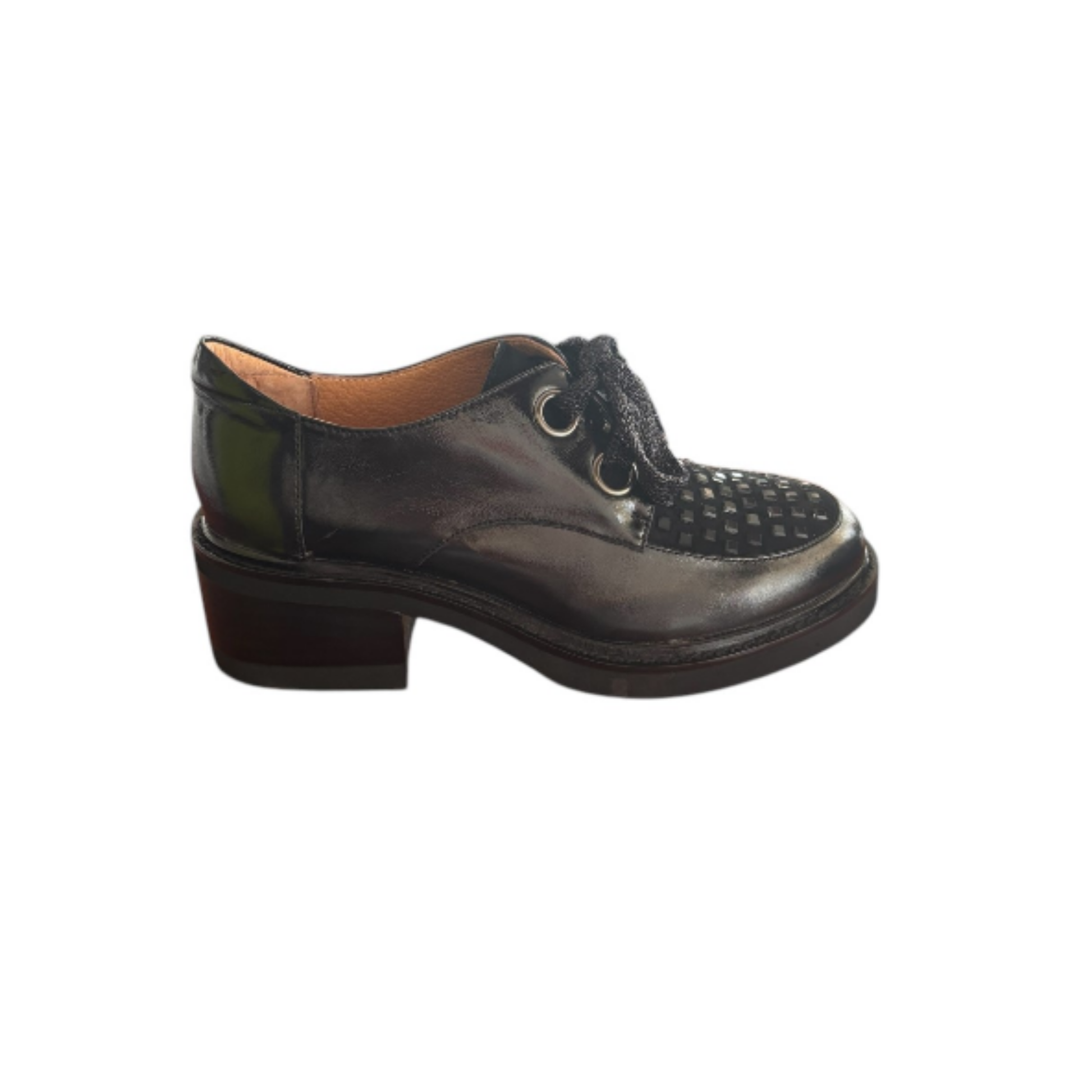 A sophisticated lace-up shoe that seamlessly blends classic design with contemporary flair. Crafted from premium leather, it features a 4.5cm heel and a distinctive velvet and jeweled embellishment across the top, adding a touch of elegance to any outfit. Designed in New Zealand, this shoe offers both comfort and style, making it a versatile addition to your wardrobe. Pair with tailored trousers or a pencil skirt for a polished professional look or combine with cropped jeans and a blouse for a relaxed yet refined ensemble. True-to-size fit although the laces provide more flexibility with width.