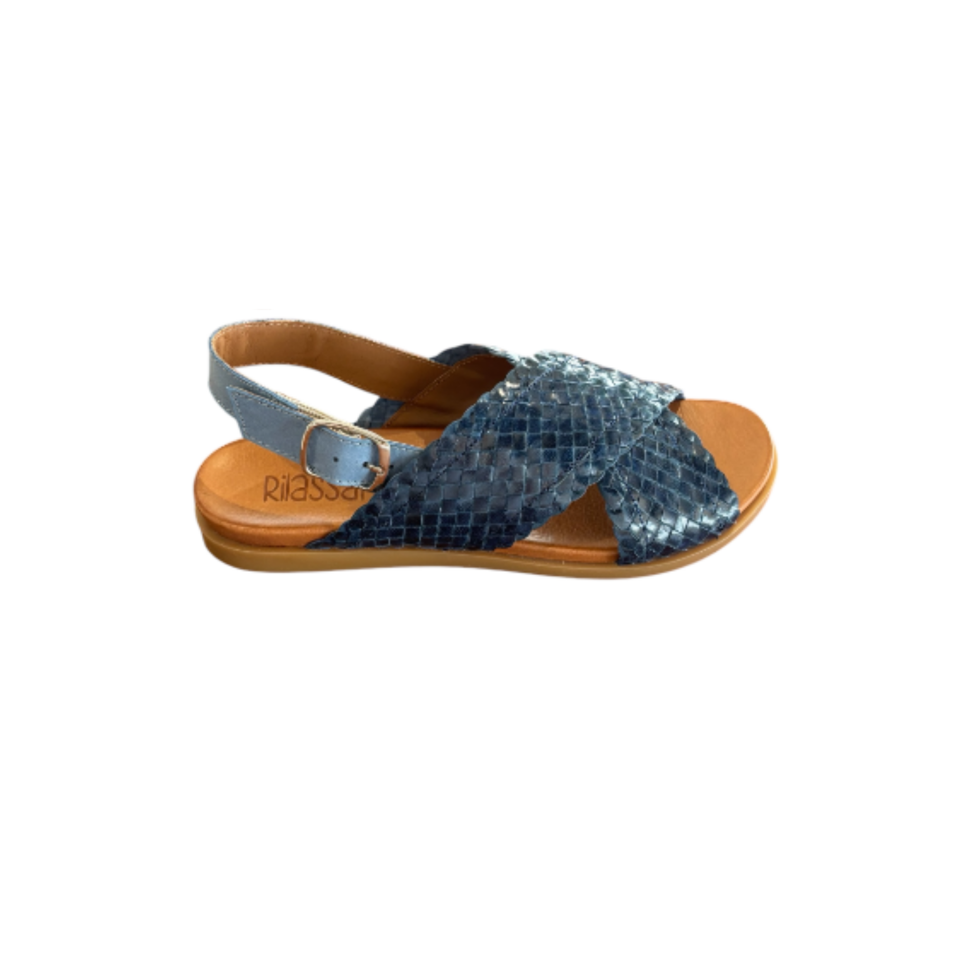 Tiyah is a relaxed summer sandal with a little texture and polish. The soft woven leather in denim blue tones creates a criss-cross front, while the buckled heel strap keeps things secure. With its cushioned insole and flexible sole, it's a comfortable option for long days out. Pair it with everything from linen pants to printed dresses. This style fits true to size and is great for a slightly wider foot thanks to the forgiving front design.