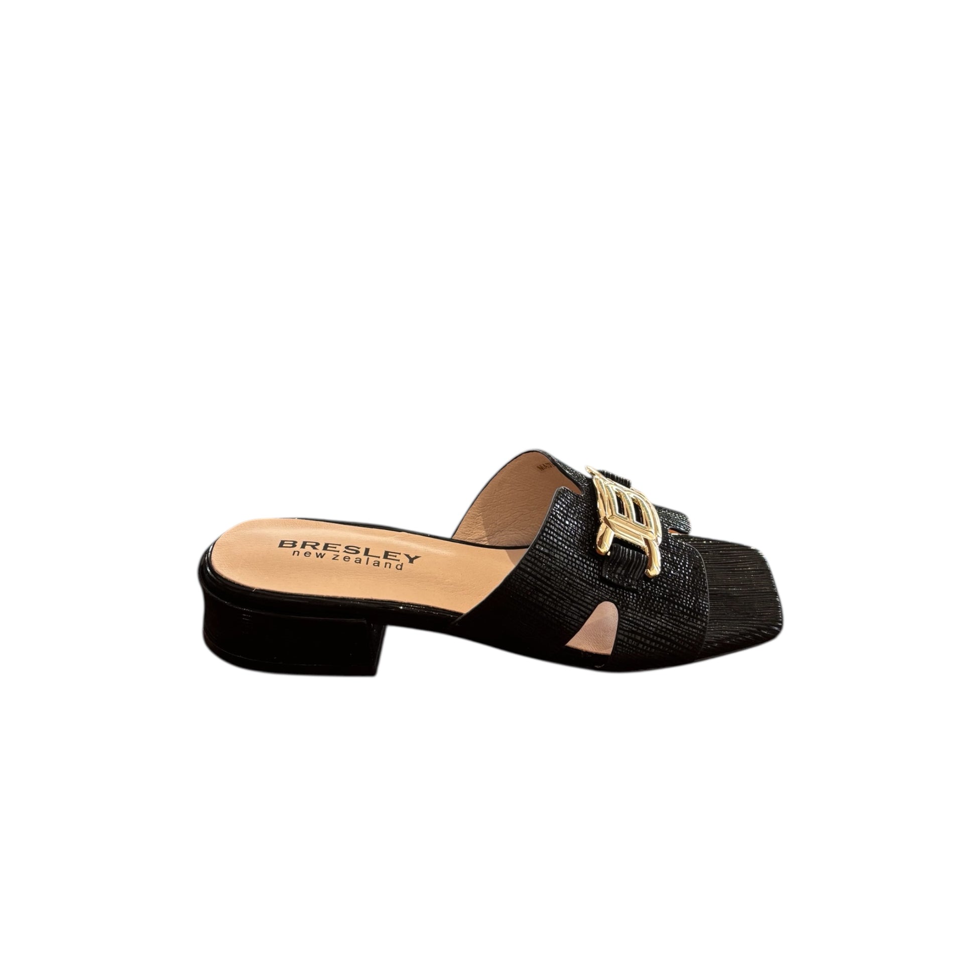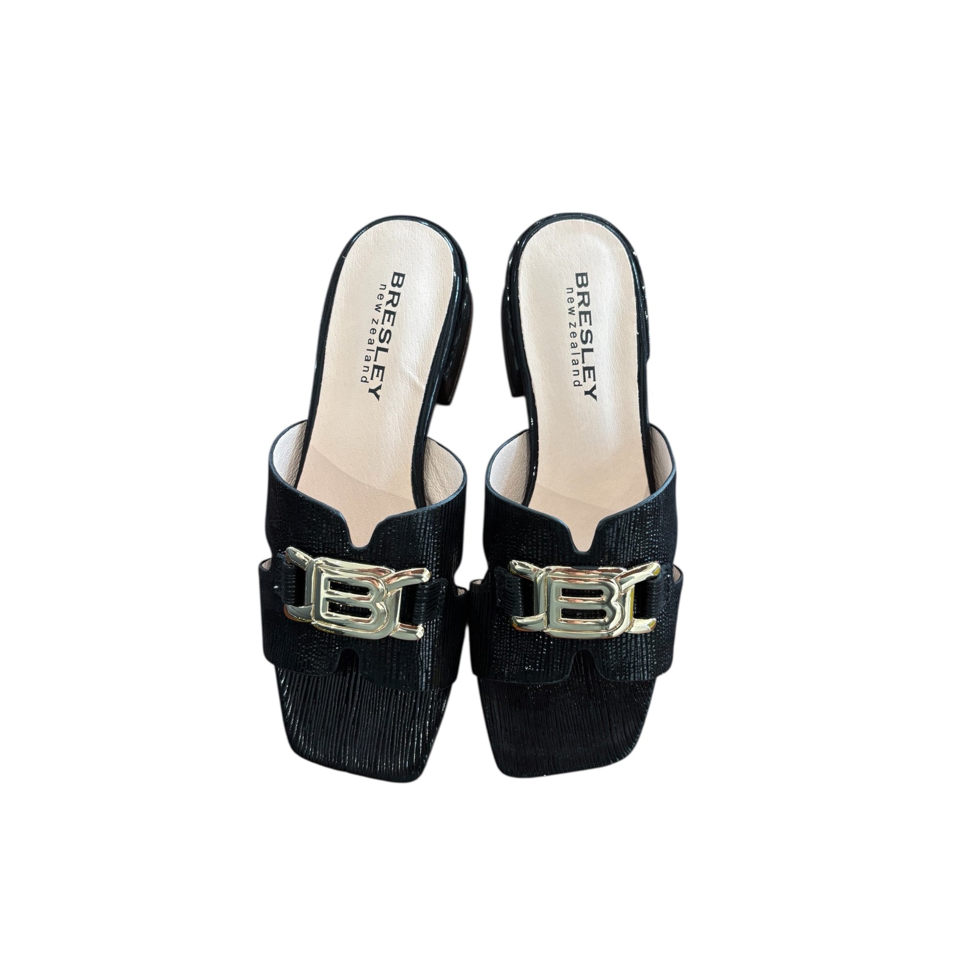 This elegant slide features a textured leather upper with a bold gold ‘B’ hardware accent, giving it just the right amount of statement sparkle. With a low block heel and soft leather lining, Scread offers comfort as well as polish — perfect for those dressy-casual occasions where style and ease both matter. Pair with tailored pants or a midi dress for a modern, effortless look. Perfect for evenings out, summer parties, or adding a touch of glam to everyday outfits. True to size. Low, comfortable heel and padded insole make it an easy all-day wear option.