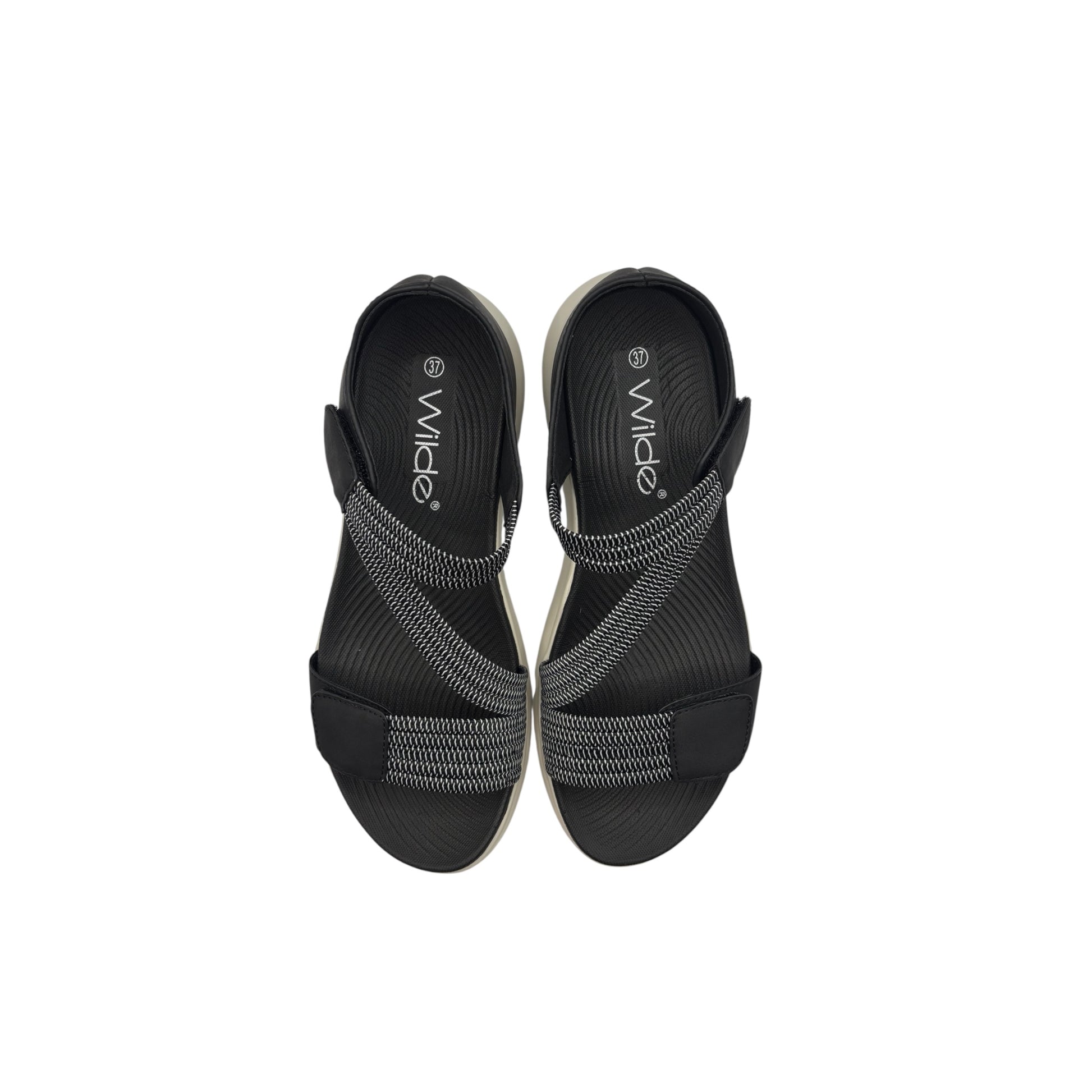 The Wilde Serena sandal is the perfect blend of sporty ease and casual style. With soft fabric straps and a touch of stretch, it hugs your foot comfortably while allowing for natural movement. The closed-in heel offers extra support and security — a detail many customers love — while the lightweight, cushioned sole keeps you comfortable all day. Velcro closures make them quick to slip on and off. Great with activewear, casual shorts, or breezy dresses for days on the go. Fits true to size, with adjustable straps for a flexible, personalised fit.