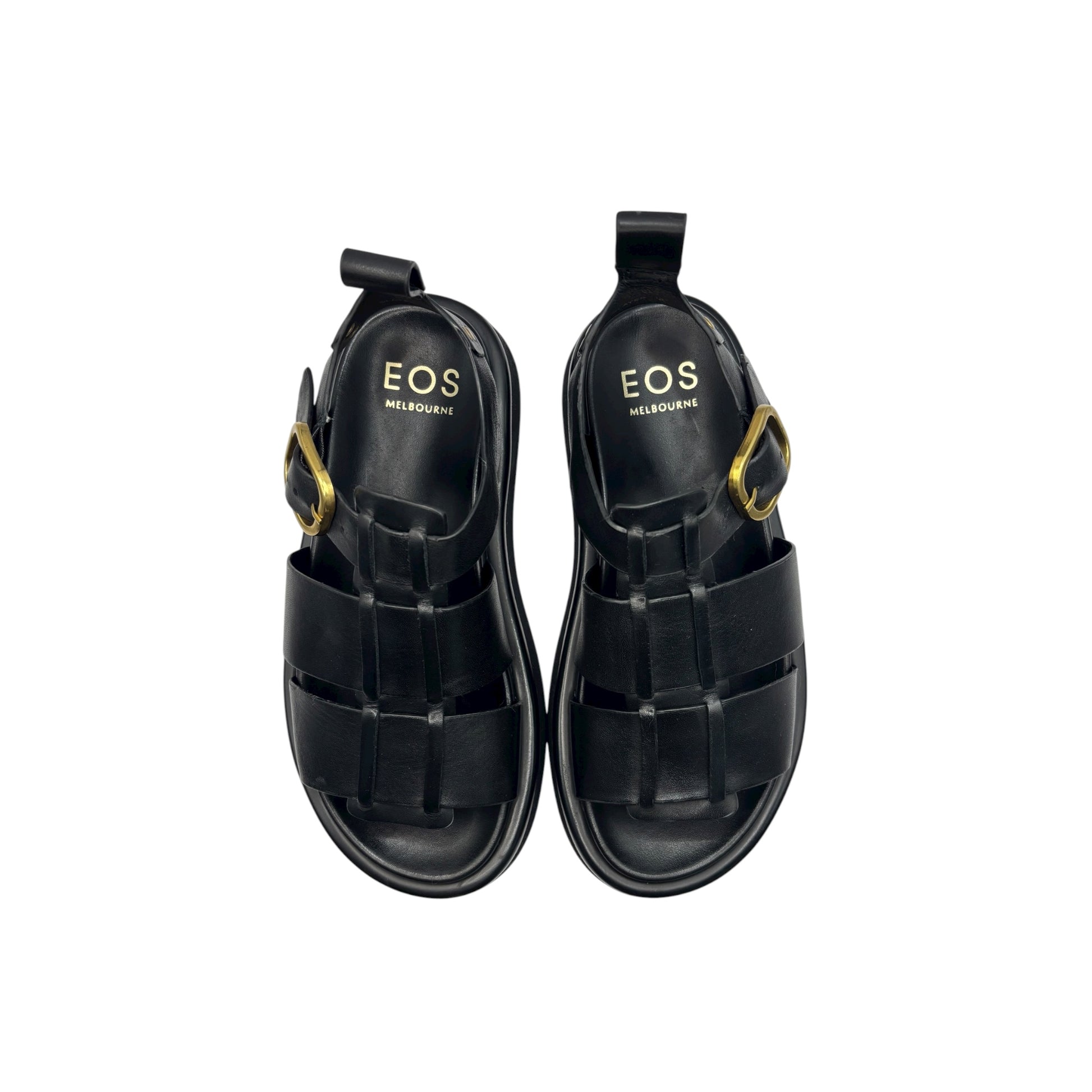 Bold and beautiful, the EOS Slayer sandal is a contemporary twist on the classic fisherman style. Crafted in soft, premium leather with wide woven straps and a chunky buckle detail, it strikes the perfect balance between statement style and everyday practicality. The cushioned footbed and supportive sole make it a dream to wear all day, while the modern platform base adds a subtle lift without compromising on comfort. Pair Slayer with cropped linen trousers for an effortlessly cool daytime look, or contrast its chunky silhouette with a floaty dress for weekend style that turns heads. True to size with a generous fit through the forefoot — ideal if you like a little extra room or prefer a more relaxed sandal feel.