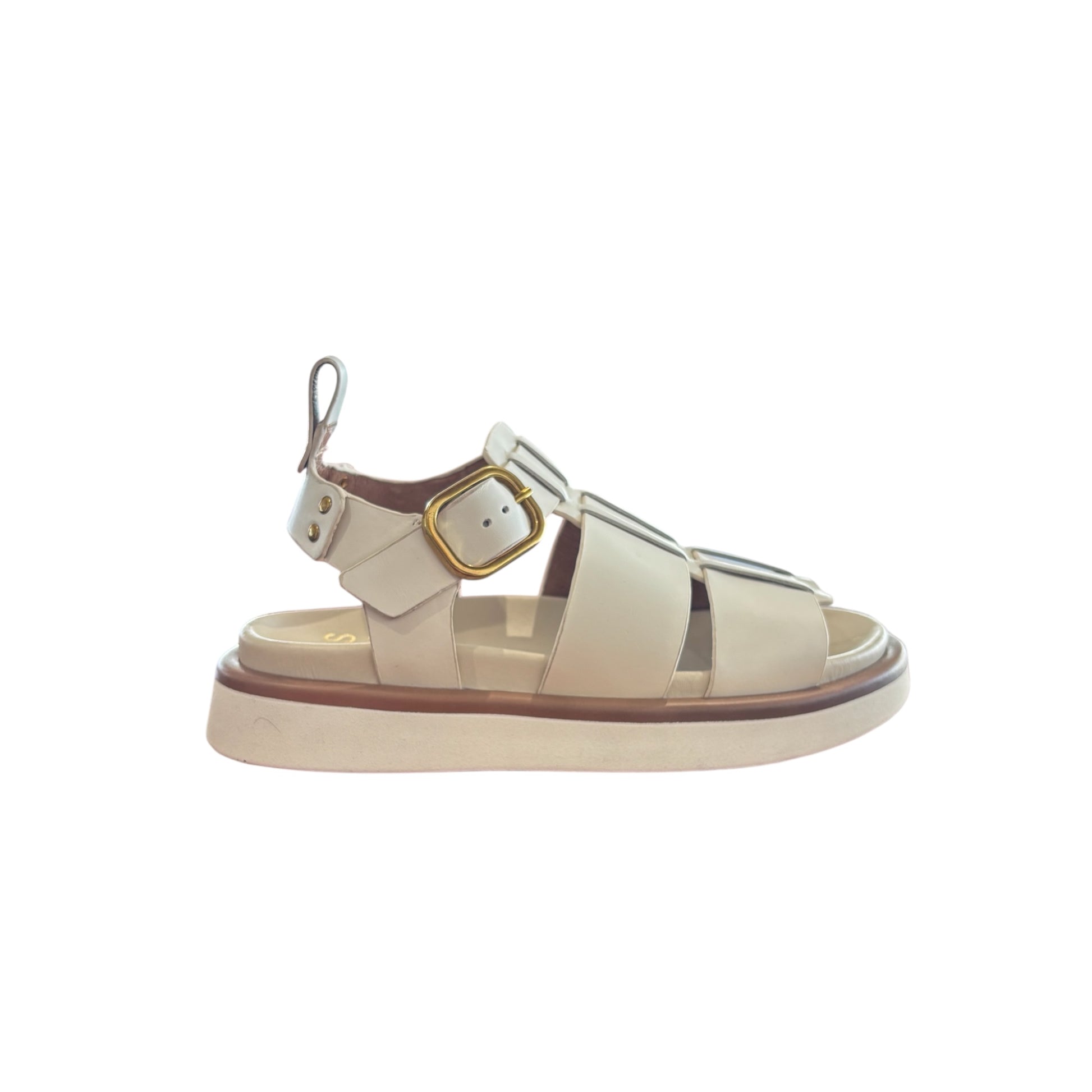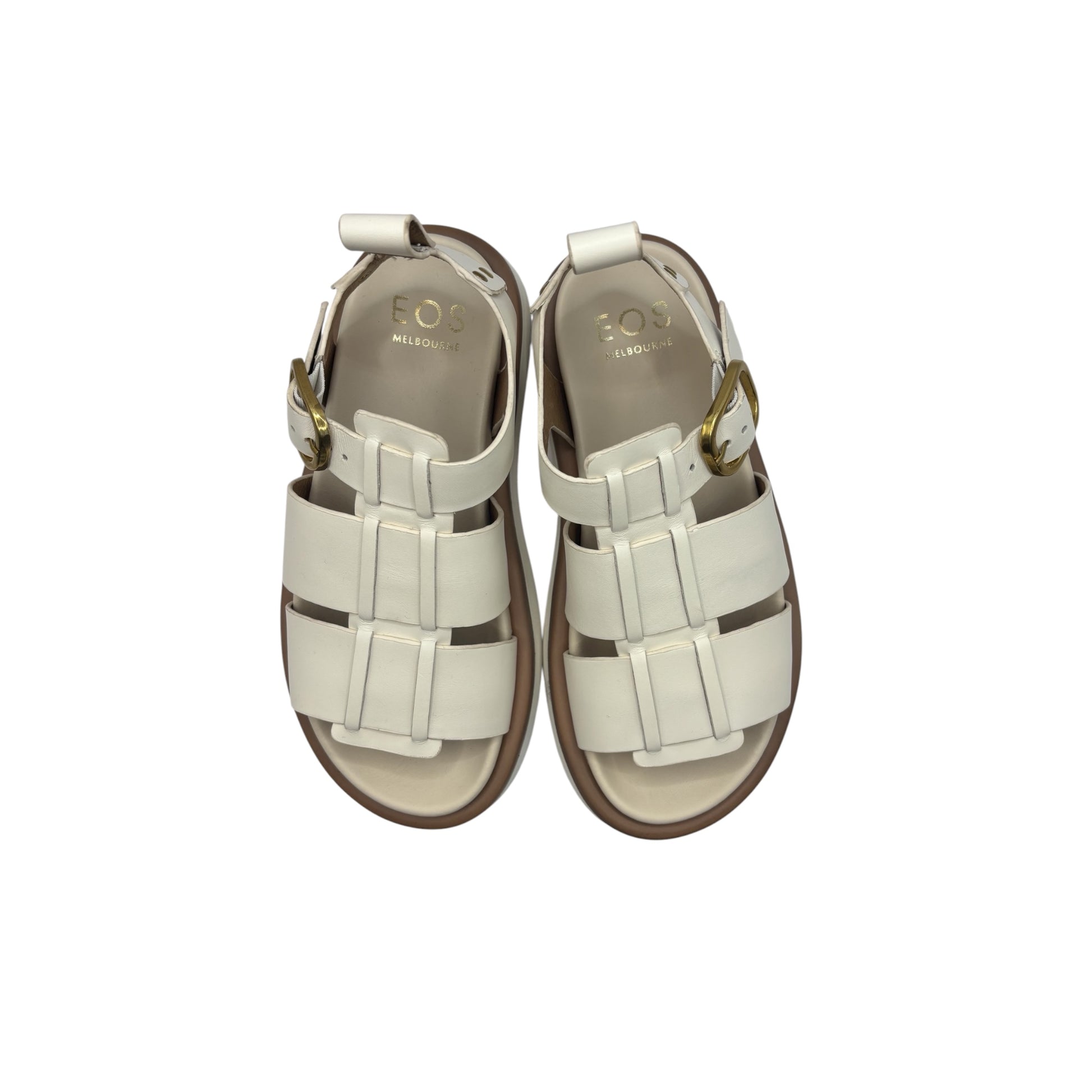 Bold and beautiful, the EOS Slayer sandal is a contemporary twist on the classic fisherman style. Crafted in soft, premium leather with wide woven straps and a chunky buckle detail, it strikes the perfect balance between statement style and everyday practicality. The cushioned footbed and supportive sole make it a dream to wear all day, while the modern platform base adds a subtle lift without compromising on comfort. Pair Slayer with cropped linen trousers for an effortlessly cool daytime look, or contrast its chunky silhouette with a floaty dress for weekend style that turns heads. True to size with a generous fit through the forefoot — ideal if you like a little extra room or prefer a more relaxed sandal feel.