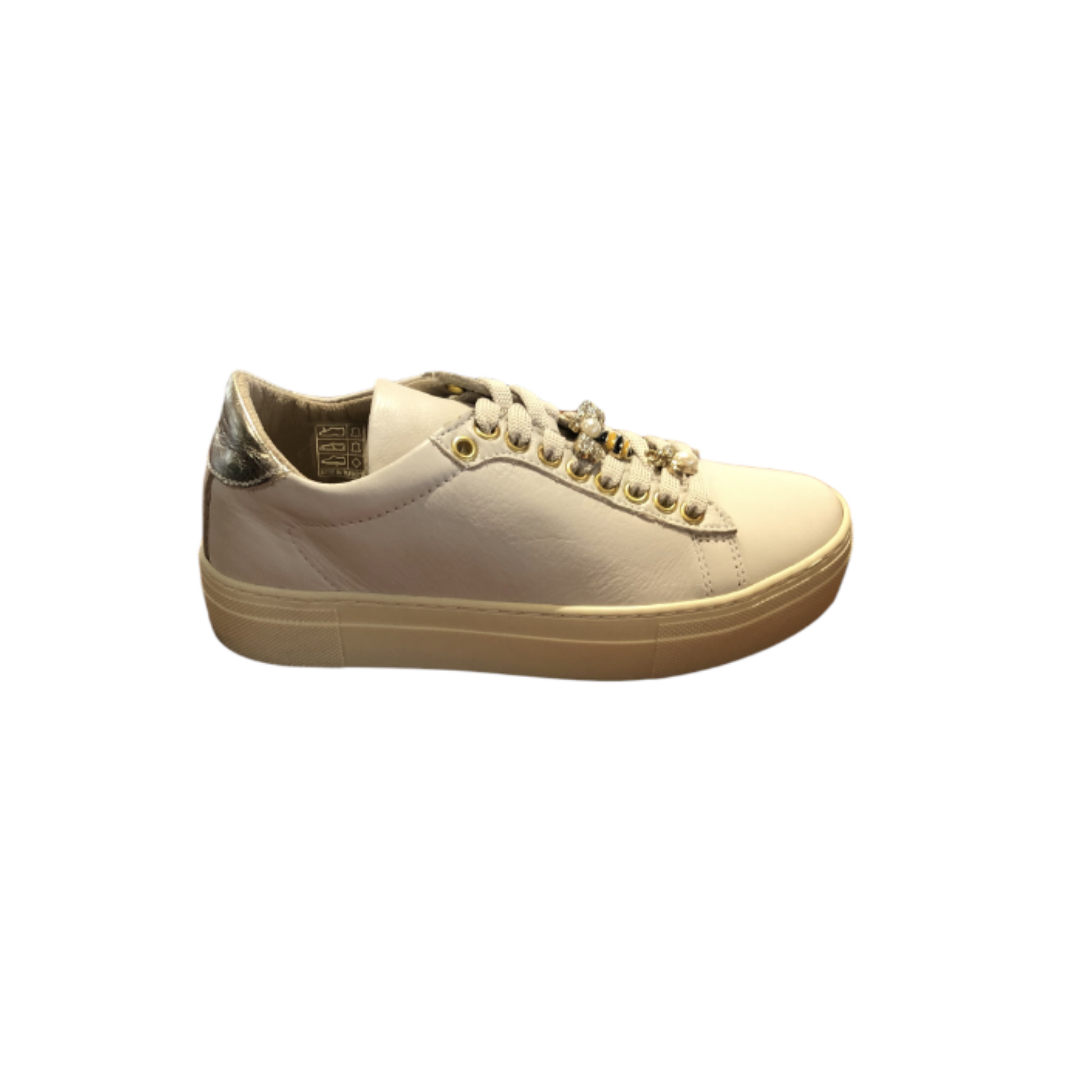 A platform sneaker featuring gold bee lace charms with pearl and rhinestone embellishments. Designed with soft leather lining and a 3cm lightweight rubber sole, this shoe blends fashion-forward aesthetics with everyday comfort. Elevate your outfit by pairing these sneakers with wide-leg trousers and a structured blazer, or embrace a street-style edge with leggings and an oversized hoodie. Runs slightly small—if you're in between sizes, consider sizing up