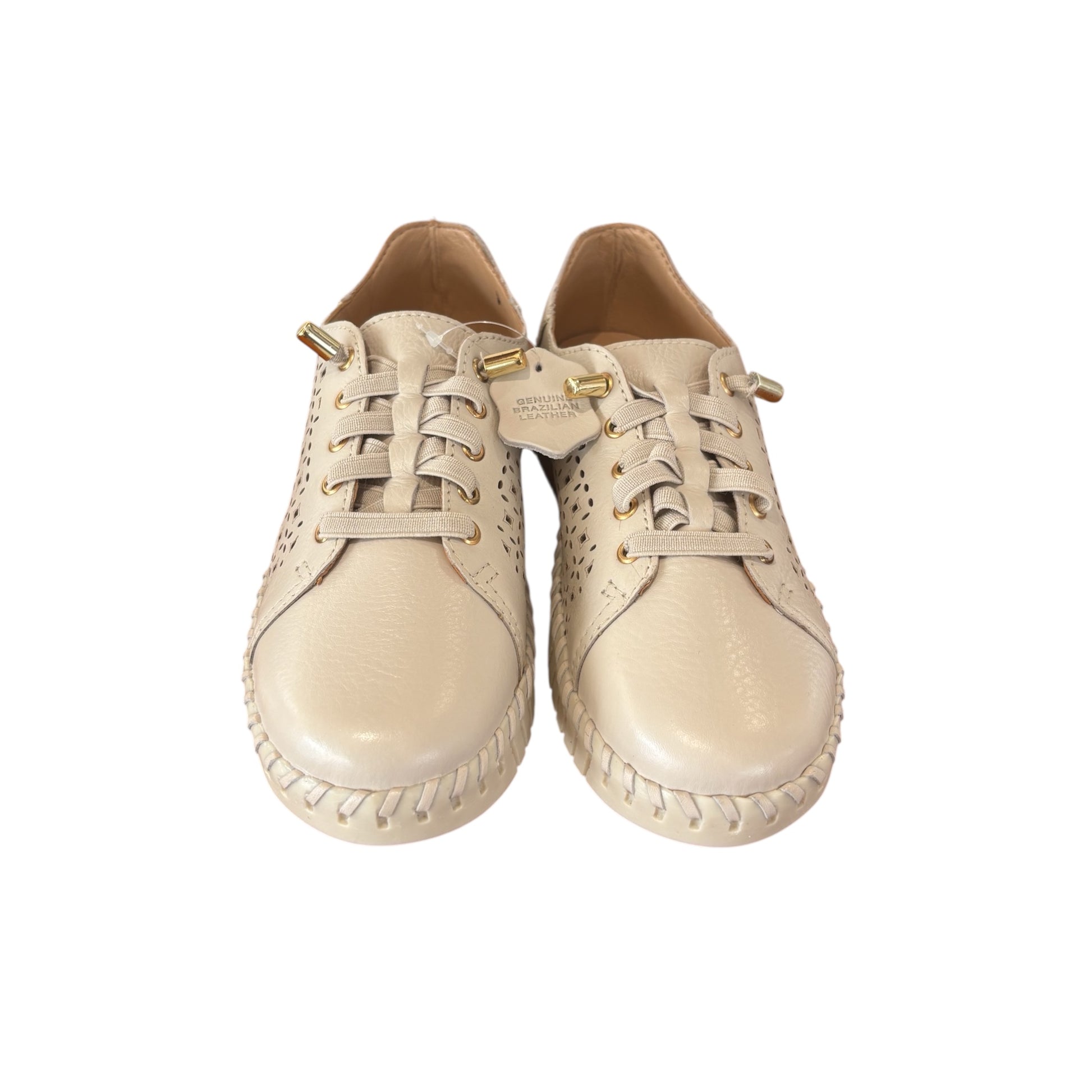 A modern twist on comfort styling, Xenia blends casual ease with polished design. Crafted in soft, genuine leather with intricate laser-cut detailing, it offers breathability without sacrificing style. The contrast stitching and subtle gold eyelets add a refined touch, while the flexible sole ensures comfort with every step. Perfect for smart-casual days — pair with cropped trousers, linen culottes or a relaxed dress for an effortless look that feels as good as it looks. Ideal for travel, shopping days or when you want to elevate your off-duty style. True to size with a soft leather upper that moulds beautifully to your foot and elastic laces for flexibility.