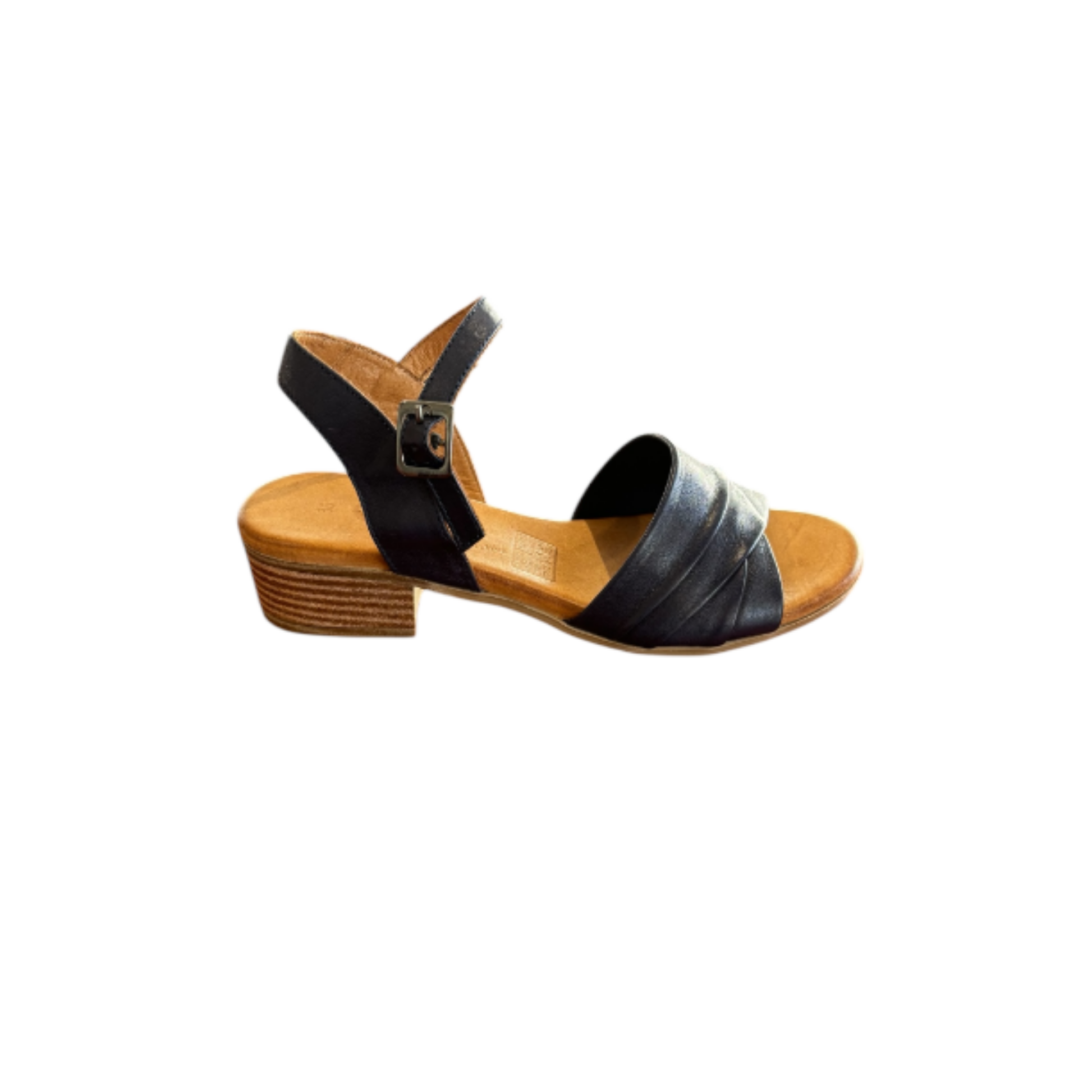 A low block heel sandal crafted from luxurious, super-soft leather. Featuring an adjustable ankle strap, this shoe ensures a secure and comfortable fit.